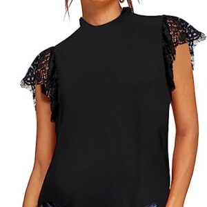 Romwe Women Elegant Short Sleeve Mock Neck Workwear Blouse Top Shirts