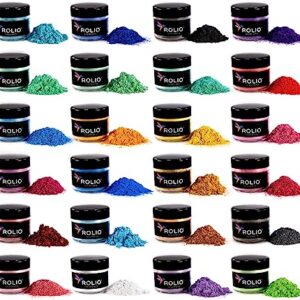 Rolio – Mica Powder – 24 Jars of Pigment for Paint, Dye, Soap Making, Nail Polish, Epoxy Resin, Candle Making, Bath Bombs, Slime