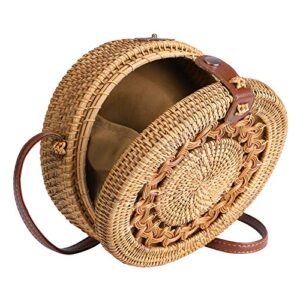 Round Rattan Bag for Women Straw Bag Handwoven Beach Bohemian Shoulder Purse by Enmain