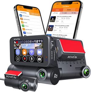 Rove R3 Dash Cam, 3” IPS Touch Screen, 3 Channel Dash Cam Front and Rear with Cabin, Built-in GPS, 5.0 GHz WiFi, 2K 1440P+1080P+1080P, 24-HR Parking Monitor, Supercapacitor, Supports up to 256GB Max