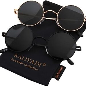 Round Polarized Sunglasses for Men Women Small Retro Metal John Lennon Style