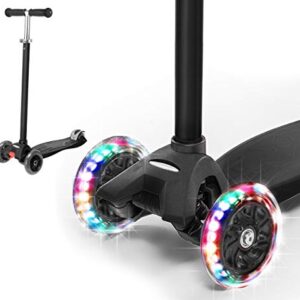 Rugged Racers Kick Scooter for Boys & Girls 3 Wheel Scooter, Adjustable Kick Scooter for Kids with PU LED Light Up Wheels, Step Brake, Lean 2 Turn, Ride on Toys for Children 5 Year Plus (Black)