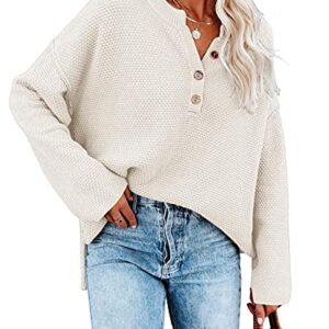 Saodimallsu Women Oversized Sweaters Batwing Long Sleeve Loose V Neck Button Henley Tops Pullover Knit Jumper