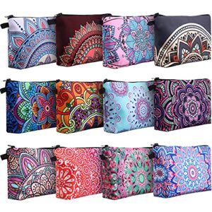 Sanwuta 12 Pieces Cosmetic Bags Makeup Bags Printed Mandala Flower Roomy Toiletry Bag Waterproof Beauty Bag Organizer Pouches with Zipper Makeup Accessories for Women Girls (Classic Style)