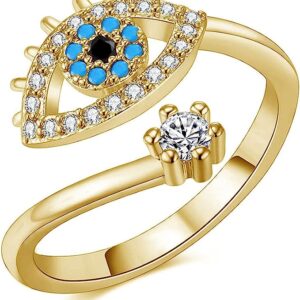Sarineer Womens Blue Evil Eye CZ Stone Adjustable Rose Gold Plated Open Rings