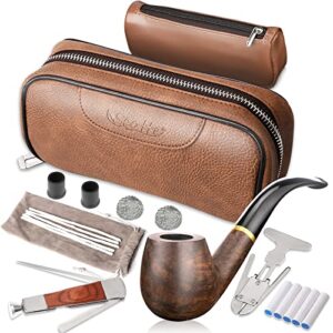 Scotte Tobacco Smoking Pipe,Leather Tobacco Pipe Pouch Pear Wood Pipe Accessories(Scraper/Stand/Filter Element/Filter Ball/Small Bag/Box) (Brown)