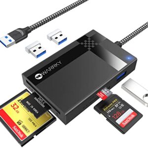 SD Card Reader 7 IN 1 USB 3.0, WARRKY 2.5FT [Highspeed, Simultaneous Read and Write] Multi-Port Adapter Hub of 3 USB, 4 Memory Cards for CF, MS, SDXC, SDHC, MMC, Micro SDXC, microSD, Micro SDHC, UHS-I