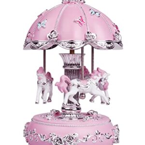 SDGINA Carousel Music Box for Girls – Color Changing Musical Carousel Horse Rotating and Plays Tune Castle in The Sky, Pink Musical Boxes and Figurines for Kids Girl Kids Baby Birthday