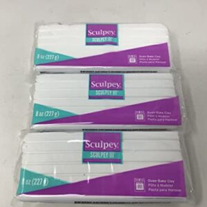 Sculpey III White Oven-Bake Clay – Used for Creating Home Decor, Figurines, Etc – 8 Ounces, Pack of 3