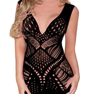 SeaFever Sexy Lingerie for Women Fishnet Bodysuit One Piece V-Neck Mini Dress Strapless Mesh Chemise Babydoll