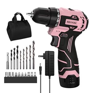 SEYVUM C11 Cordless Drill Set, [Compact] [Powerful Brushless Motor], 12V Electric Drill 350 In-lb Torque, Power Drill with Tool Bag, 1H Fast Charger, Lightweight, Electric Screwdriver Drill Bits(Pink)