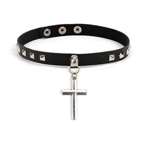 Shegirl Gothic Leather Choker Punk Rivet Collar Choker Necklace Black Cross Pendant Choker Jewelry for Women and Girls(Cross)