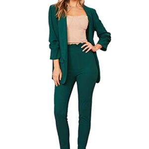 SheIn Women Two Piece Open Front Long Sleeve Blazer and Elastic Waist Solid Pant Set Suit