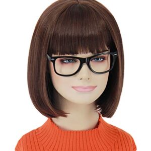 SHECOOL Brown Bob Wigs for Velma Cosplay Costume Wig with Glasses Short Bob Wig with Bangs Cute Natural Looking, Synthetic Hair Wigs for Daily Party Halloween SL005BR