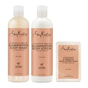 SheaMoisture Bath and Body Kit for Dry Skin Coconut and Hibiscus Illuminating Skin Care, 3 Count