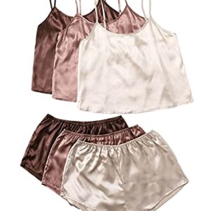 SheIn Women 3 Sets Satin Pajama Set Sleeveless Crop Cami and Elastic Waist Shorts Sleepwear Lounge Set
