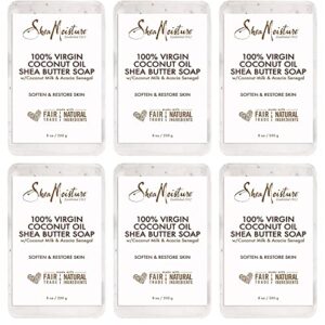Shea Moisture Shea Butter Body Wash Bar Soap, Cleansing Skin Care to Soften & Restore, 100% Virgin Coconut Oil with Coconut Milk, Shea Butter & Acacia Senegal, 8 Oz Bar – 6 pack