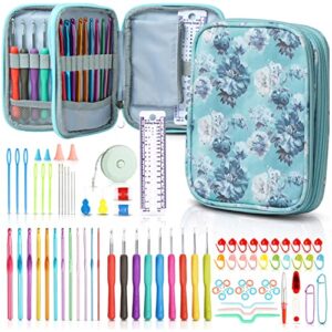 SHAXANO Crochet Hooks Kit with Case, 86 Piece Crochet Hooks Set, with 9 Rubber Ergonomic Hook and 12 Aluminum Crochet Hooks, 65 Necessary Accessories for Sewing, Weaving, Knitting