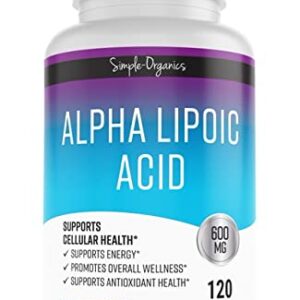 Simple-Organics Alpha Lipoic Acid Supplement, Antioxidant and Energy Support, Non-GMO Pills for Overall Wellness, No Gluten and Soy, 600mg per Serving, 120 Vegan Capsules