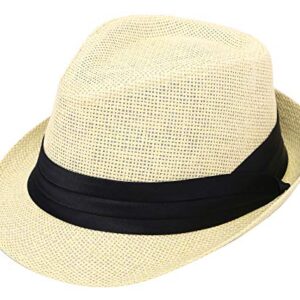 Simplicity Men/Women Summer Classic Short Brim Beach Sun Hat Straw Fedora Hat
