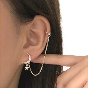 Sither Women Earring with Cuff Chain for Girls Ear Clips Ear Wraps Cuff Earrings Dangle Earrings Helix Cartilage Clip On Christmas Jewelry Gift for Her(1 Piece)