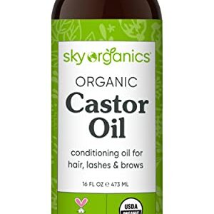 Sky Organics Organic Castor Oil for Hair, Lashes & Brows 100% Pure & Cold-Pressed USDA Certified Organic to Strengthen, Moisturize & Condition, 16 fl. Oz