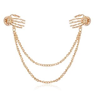 Skull Collar Pin Gold Tone Bronze Necktie Tie Cravat Pin Clip Business Suit Collar Bar Pin Brooch with Chain Halloween Gifts for Boyfriend Boys Men FRIENDS