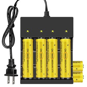 Skywolfeye 6 Pack Batteries, Battery Button Top 4 Bay 3.7V Battery Charger 18650 Smart Batteries Charger for Rechargeable Flashlight, Headlamp, RC Car, Camera Video, Doorbells