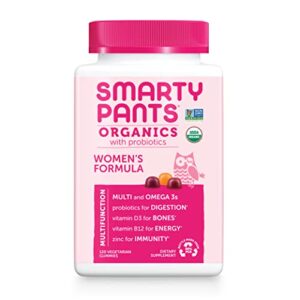 SmartyPants Organic Womens Multivitamin, Daily Gummy Vitamins: Biotin, Probiotics, Vitamin C, D3, B12, Omega 3, & Zinc for Immune Support, Energy, & Hair Skin & Nails, 120 Gummies, 30 Day Supply