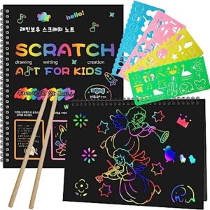 Smasiagon Scratch Paper Art Set for Kids, 2 Pack Scratch Off Art Notebook Crafts Gift for Kids Ages 3 4 5 6 7 8 9 10 Girls Boys Birthday Halloween Christmas Party Games DIY Favor Activity