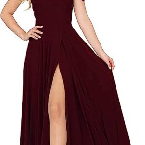 SMORBRID Women Off Shoulder Bridesmaid Dresses Long with Slit Spaghetti Strap Chiffon Formal Evening Dresses for Wedding