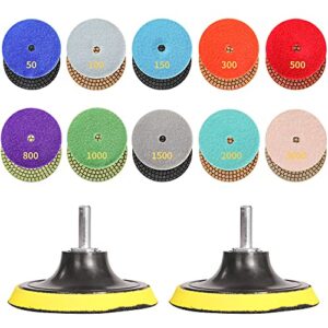 Sogalife 12 Pack 4 inch Diamond Polishing Pads Set, Wet & Dry Polish Wheel for Granite Stone Concrete Marble Glass Floor Grinder or Polisher, 50#-3000# Buffing Pads with 2pcs Hook & Loop Backer Pads