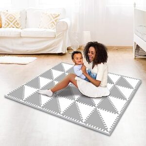 Softest Baby Play Mat Interlocking Foam Floor Tiles in Grey/White 70″ x 56″ Play Space by TCG Toys