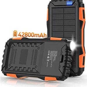 Solar Power Bank,Solar Charger,42800mAh Power Bank,Portable Charger,External Battery Pack 5V3.1A Qc 3.0 Fast Charging Built-in Super Bright Flashlight(Orange)