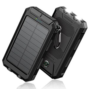 Solar-Charger-Power-Bank – 36800mAh Portable Charger,QC3.0 Fast Charger Dual USB Port Built-in Led Flashlight and Compass for All Cell Phone and Electronic Devices(Black)