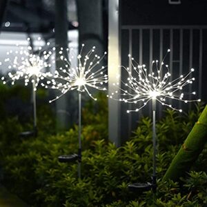 Solar Firework Light, 120 LED Warm Light Outdoor Solar Garden Fireworks Lamp for Walkway Pathway Backyard Christmas Parties Decoration (White) (2 Pieces)