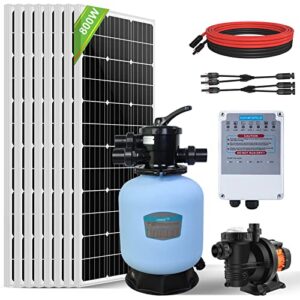 Solar Pool Pump System DC Pool Pump Powered by 800W Solar Panel, Swimming Pool Sand Filter System with 6-Way Multi-Port Valve for Family inground or aboveground Pool