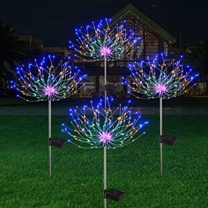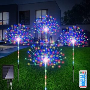 Solar Garden Lights, 4 Pack Solar Fireworks Lights Outdoor Waterproof, 8 Modes Decorative Landscape Light for Garden Pathway Lawn Yard, No Remote(Colorful)