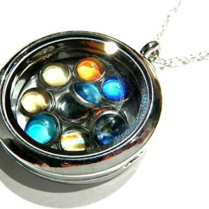 Solar System Floating Locket 10 Removable Planets Pluto Earth Sun Glass Pendant on Stainless Steel Chain Necklace