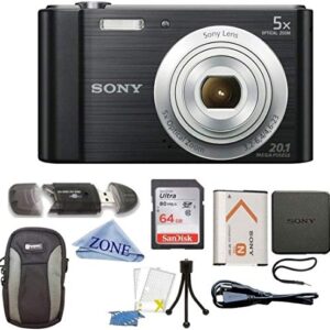 Sony W800/B DSC-W800/B DSCW800B 20 MP Digital Camera 5X Optical Zoom (Black) Bundle with 64GB SDHC Memory Card, Table top Tripod, Deluxe Case, and Microfiber Lens Cloth
