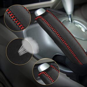 SUNBREATH Compatible with Genuine Leather Hand-Stitched Handbrake Cover Interior Accessories Protective Cover Decoration for Honda Civic 2006 2007 2008 2009 2010 2011 Red Line