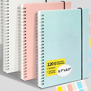 SUNEE Dotted Journal Spiral Notebook – A5 Spiral Bullet Journals with 120gsm Thick Dotted Paper, 3 Pack Dot Grid Notebook Giftable Journal for Women for School, Office, Artist Writing/Drawing, 80 Sheets, 5.7″ x 8.3″, Blue, Pink, Transparent
