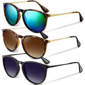 Sunglasses for Women Men, Womens Vintage Sunglasses 3Pack Trendy Round Classic Retro Mirrored Polarized Sun Glasses