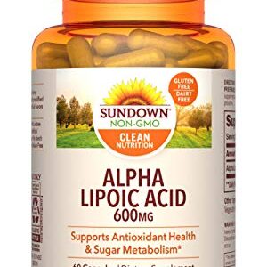 Sundown Super Alpha Lipoic Acid 600 mg, 60 Capsules (Packaging May Vary) Non-GMOˆ, Free of Gluten, Dairy, Artificial Flavors