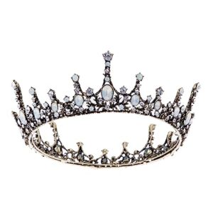 SWEETV Crystal Baroque Queen Crown – Vintage Princess Tiara, Wedding Prom Hallloween Opal Costume Hair Accessories for Women and Girls, Penelope