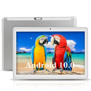 Tablet 10 inch Android 10.0 Tablet PC, 3G Phablet with Dual Sim Card Slots,2MP+8MP Dual Camera,4GB RAM, 64GB Storage,1280X800 IPS Screen,Bluetooth,GPS,FM,WiFi Android Tablets (Silver)