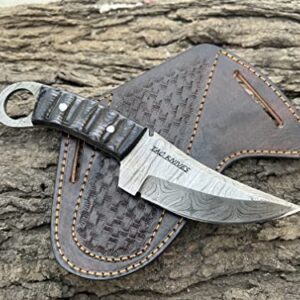 TAC Knives – Bushcraft Survival Knife12T27 Damascus Steel Fixed Blade outdoor Knife- Pakka Wood Handle – Pancake Leather Sheath – Traditional Field Knife for Camping Knife, Fishing, Hunting Knife, Men & Women – EDC Knife to Carry on Belt- (BLACK)