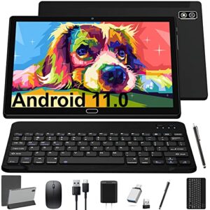 Tablet 10 Inch Android 11 Tablets, 2 in 1 Tablet PC with 4+64/128GB Storage Octa-Core, Dual Sim Card Slots Support 4G Cellular Tablet with Keyboard,13MP Camera, 6000mAh Battery, GPS, Bluetooth, WiFi