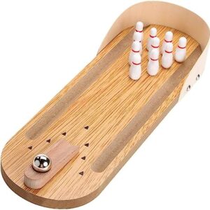 Table Top Mini Bowling Game Set – Tabletop Wooden Board Mini Arcade Desktop Tiny Bowling Shooting Alley Office Desk Stress Relief Gadgets Small Finger Toys Fun Gag Gifts for Men Adults Kids Teens Boys