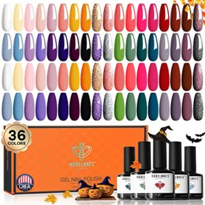 Modelones Gel Nail Polish Set, 36 Pcs Colors 7ML All Seasons Holiday Gel Polish Soak Off Vibrant Nail Polish Glitter Gel Nail Art Starter Kit Beauty Gifts Set for Women Girls Halloween Christmas Day